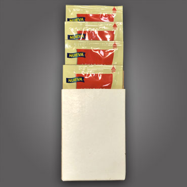Estuchadora horizontal de movimiento intermitente. Partiendo de cajas plegadas con pegado lateral, las abre, introduce el o los envases y las cierra con cola o hot-melt.
